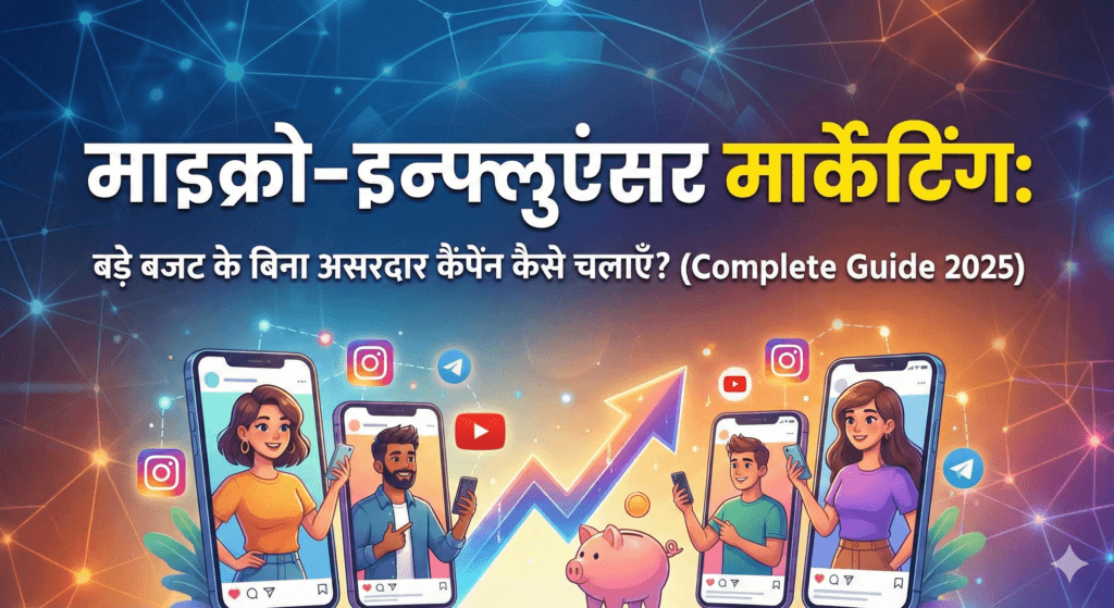 Micro-Influencer Marketing: बड़े बजट के बिना असरदार कैंपेन कैसे चलाएँ? (Complete Guide 2025) परिचय (Introduction) क्या आप भी अपनी ब्रांड मार्केटिंग के लिए लाखों का बजट खर्च करने से डरते हैं? या फिर आपने Facebook और Google Ads पर पैसा लगाया, लेकिन रिजल्ट (ROI) उम्मीद के मुताबिक नहीं मिला? सच तो यह है कि आज